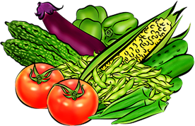 たとえばスーパーや農作物の直売所に並んでいるたくさんの野菜や果物、お肉。
